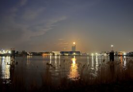 Vanmorgen de maan boven de Zaan en nu dus weer. Dit keer de avond-maan vanaf de Havenstraat, bijna op de hoek van het Noordzeekanaal. Genomen op…