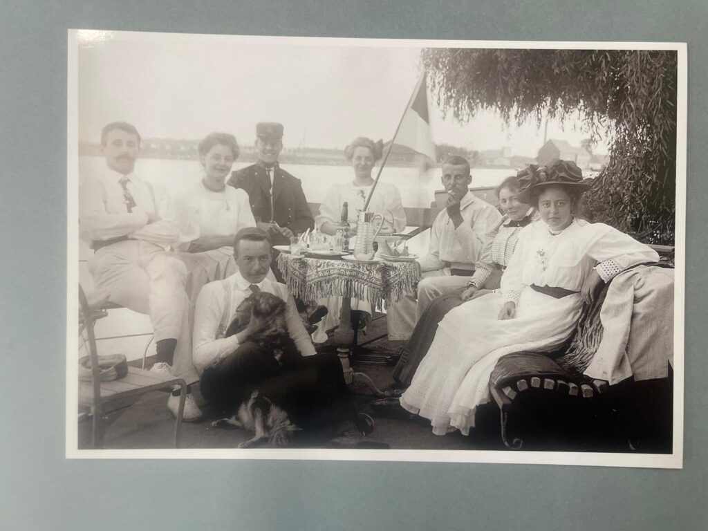 ‘Vijf zonen van rijken en notabelen begonnen een fietsclub. Dat was heel bijzonder in die tijd want de fiets was een heel modern vervoermiddel. Niet veel later werd dat een roeiclub. In 1910 mochten vrouwen ook lid worden. Zij roeiden in prachtige kleding, niet de pakken die we nu hebben.’