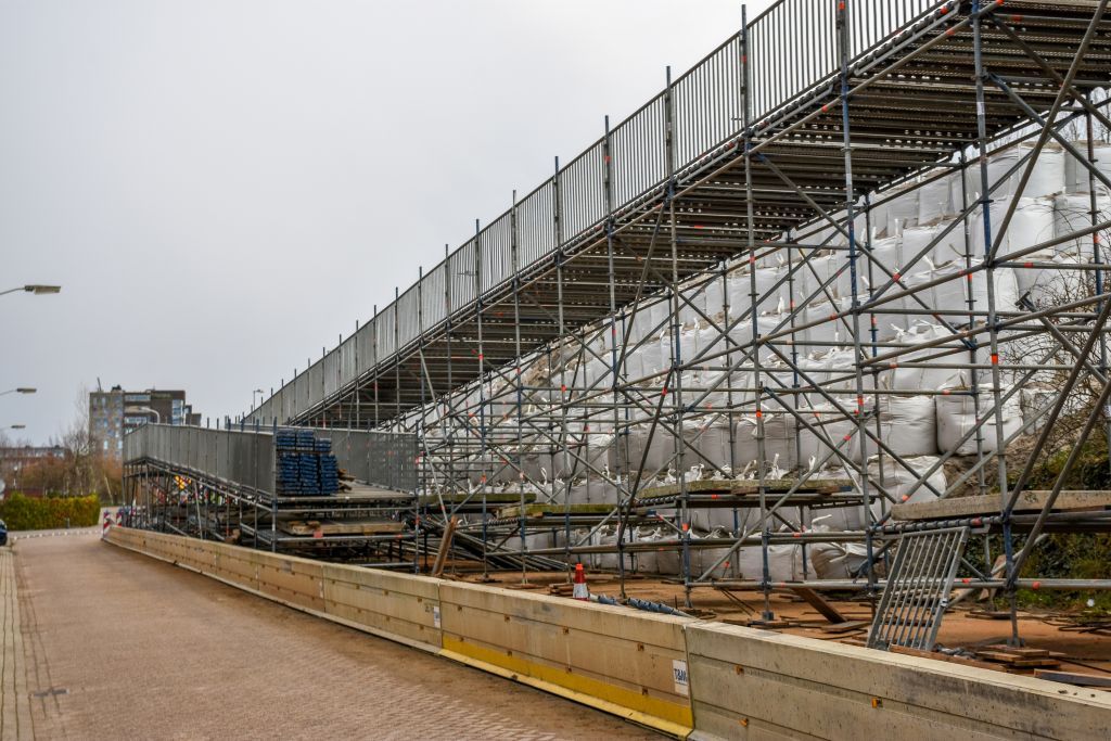 2. Bouw van de tijdelijke fietshelling bij de Den Uylbrug