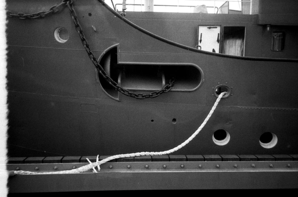 Vlakbij de Burcht aan de loswal was een hele oude Vuurtoren Schip aangemeerd voor het begin van Sail 2025 en had een hele abstracte bakboord boeg.