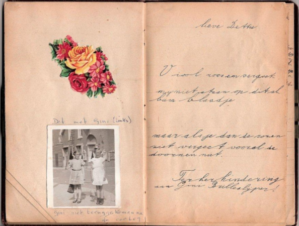 Tijdens de dodenherdenking in het Koogerpark sprak wethouder Dennis Straat onderstaande tekst uit. De foto hierboven komt uit het poëziealbum van Dettie Heidel, waarin Regina (‘Gini’) Brilleslijper rond 1940 een tekstje schreef. Regina werd in juni in Sobibor vermoord. Op de foto staat ze links naast Dettie voor de bioscoop van Oenen in Zaandijk.