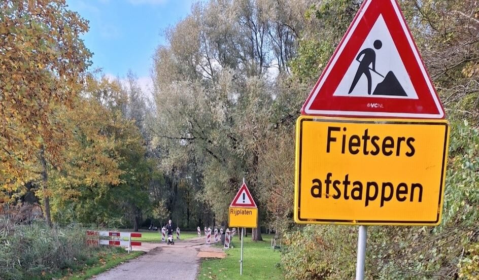 Het Darwinpark is een prachtig park waar je mag wandelen. Voetgangersgebied dus, alhoewel dit in de praktijk niet altijd blijkt te werken. Zaanstad beweegt daar soepel in mee, alhoewel ‘verwarrend’ een betere omschrijving is. De borden geven aan dat fietsers moeten afstappen, terwijl ze daar natuurlijk helemaal niet mochten opstappen.