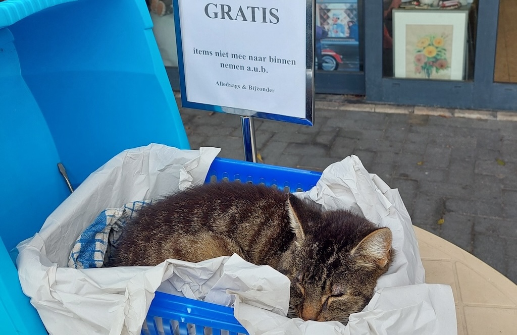Inge Visser liep langs de heropende kringloop winkel / curiosazaak Alledaags Bijzonder aan de Westzanerdijk (de oude Aldi locatie). Net als bij het vorige pand heeft de vriendelijke uitbater een tafel buiten waarop zaken staan die je gratis mag meenemen. Maar sommige items op die tafel zijn toch echt onbetaalbaar.