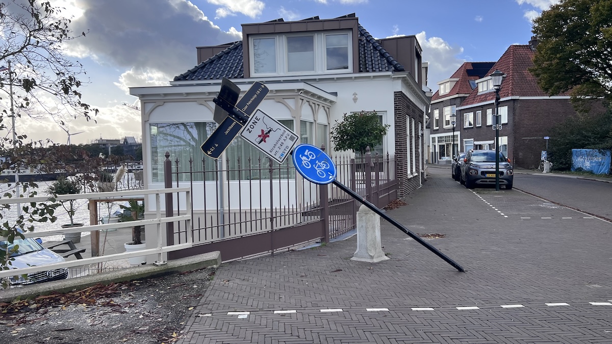 Paaltjes en Hogendijk gaan lekker samen. Is het niet de soap met de fietspaaljes, zijn het wel de megapalen op de hoek van de Lage Horn, het omgereden inrijverbod aldaar of de reuzen op de hoek met de Czarinastraat. En nu dit weer. Geen storm Benjamin. Misschien een vastgereden vrachtauto?