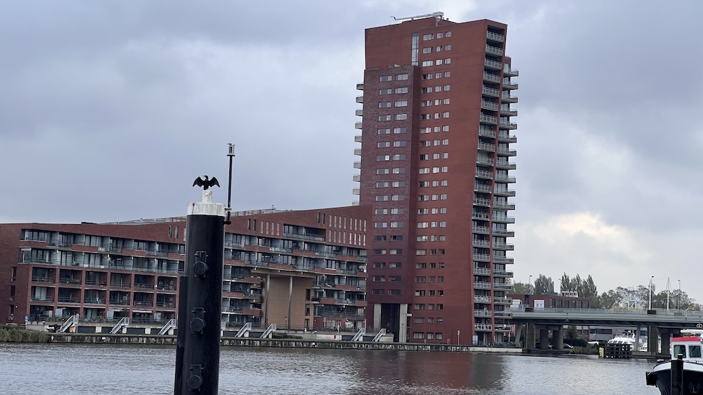 Aalscholvers zijn paalzitters. Zwemmen doen ze zo laag mogelijk in het water, en vervolgens ook onder water op zoek naar vis. Hun natte vederdek wordt dan weer zo hoog mogelijk gedroogd. Bij voorkeur op een paal. Deze spotten we aan de Havenstraat, tegen de achtergrond van de Conrad en Vissershop.