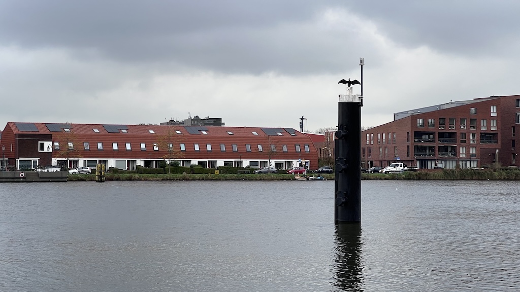 Aalscholvers zijn paalzitters. Zwemmen doen ze zo laag mogelijk in het water, en vervolgens ook onder water op zoek naar vis. Hun natte vederdek wordt dan weer zo hoog mogelijk gedroogd. Bij voorkeur op een paal. Deze spotten we aan de Havenstraat, tegen de achtergrond van de Conrad en Vissershop.