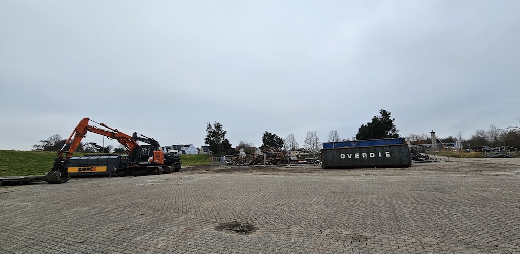 Voor het eerst sinds lange tijd is er weer zichtbaar werk bij de resten van de voormalige Wereldkeuken in Westzaan. Vorige week zijn slopers begonnen met het opruimen van wat er na de grote brand van april 2025 nog overeind stond.