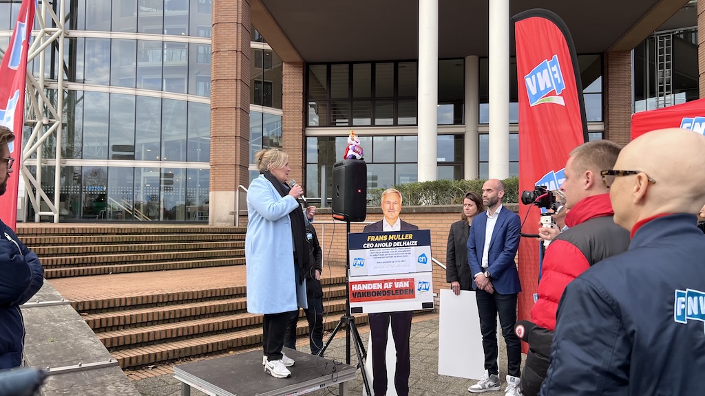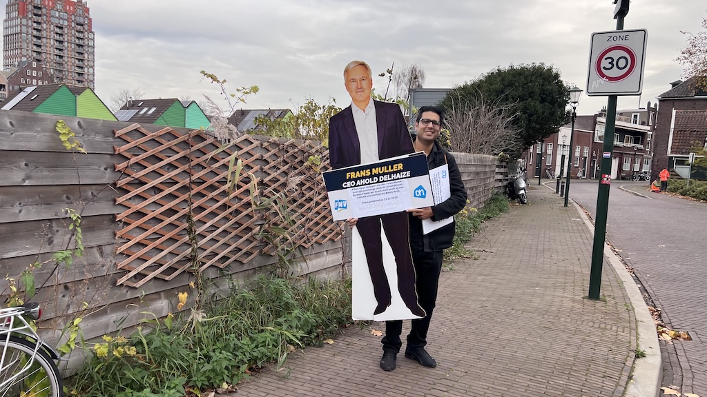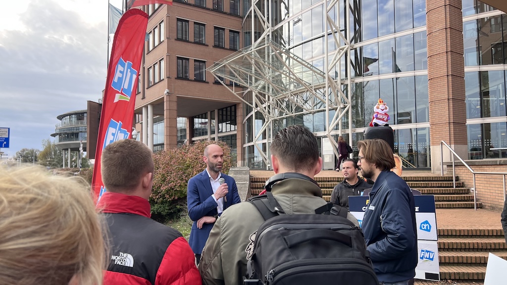 ‘Het antwoord van Albert Heijn was natuurlijk teleurstellend, maar niet verrassend. We hebben hier te maken met een bedrijf dat miljarden en miljarden winst maakt, maar ondertussen draait op jeugdlonen, op flexibele contracten, op uitzendcontracten. Iemand is acht jaar in dienst en heeft nog steeds geen vast contract. Daar kan je niet van leven. Dat is een patroon bij Albert Heijn dat we heel lang herkennen.’