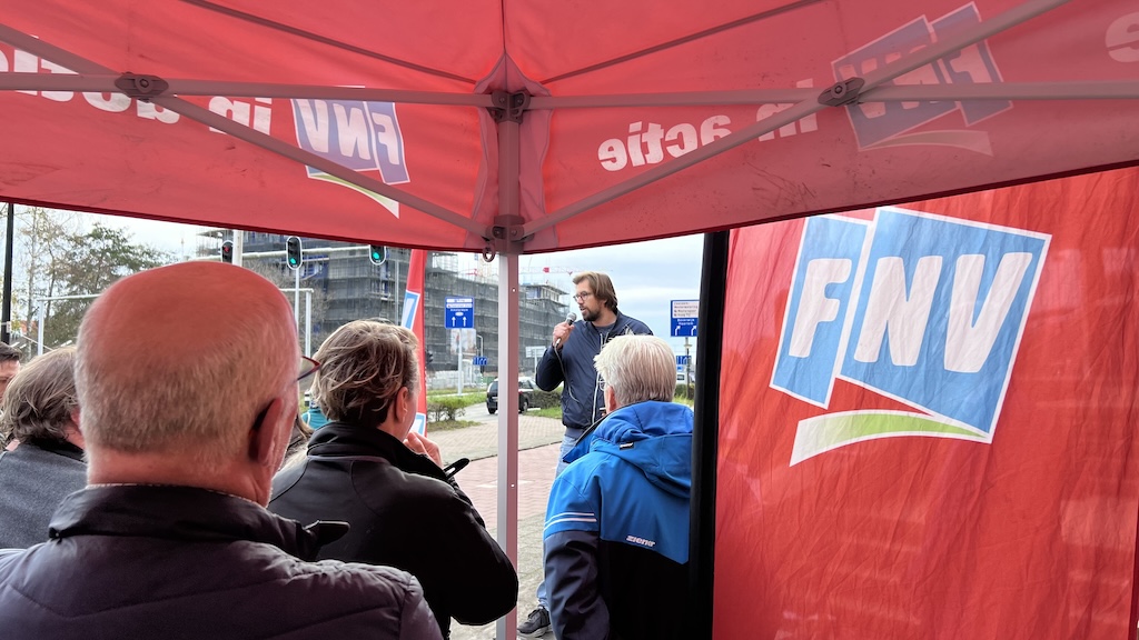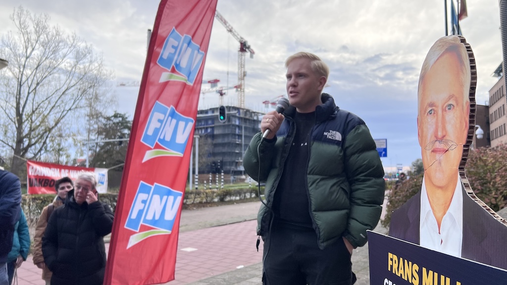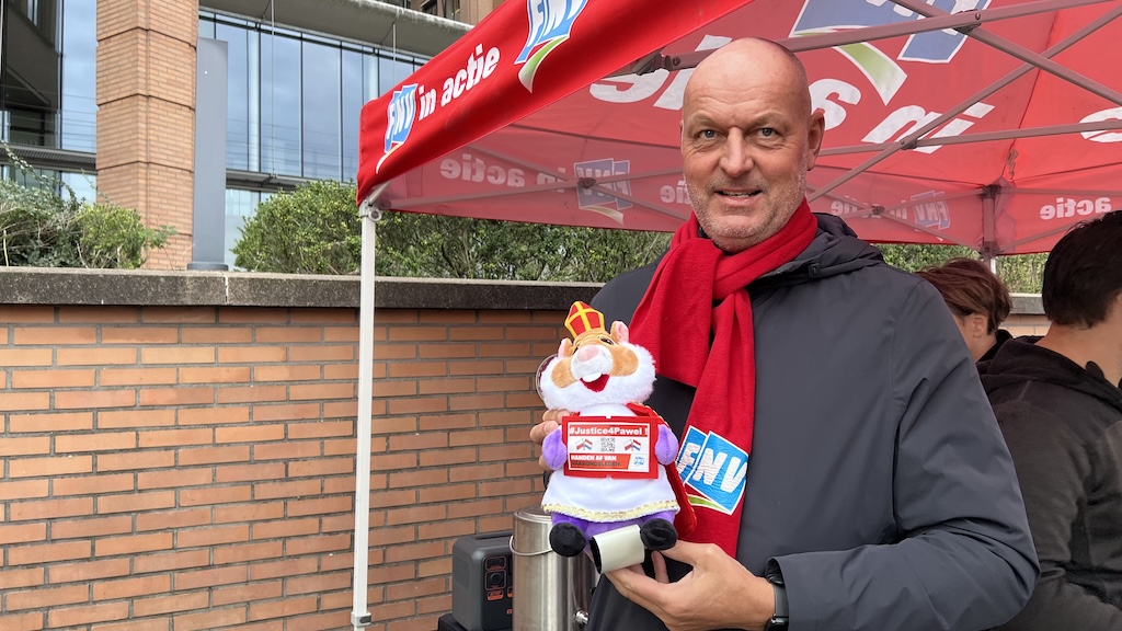‘Er komen onzalige plannen aan vanuit Europa. Daar worden vakbondsrechten aangetast en dat wordt nu vertaald naar Nederland, laat dit er geen bewijs van zijn. Wij zijn solidair met Pawel en we gaan ervoor zorgen dat hij beschermd wordt. En daar staan we voor als FNV. Ik zou ook willen vragen om nogmaals te heroverwegen en in gesprek te gaan. Dat is heel hard nodig.’