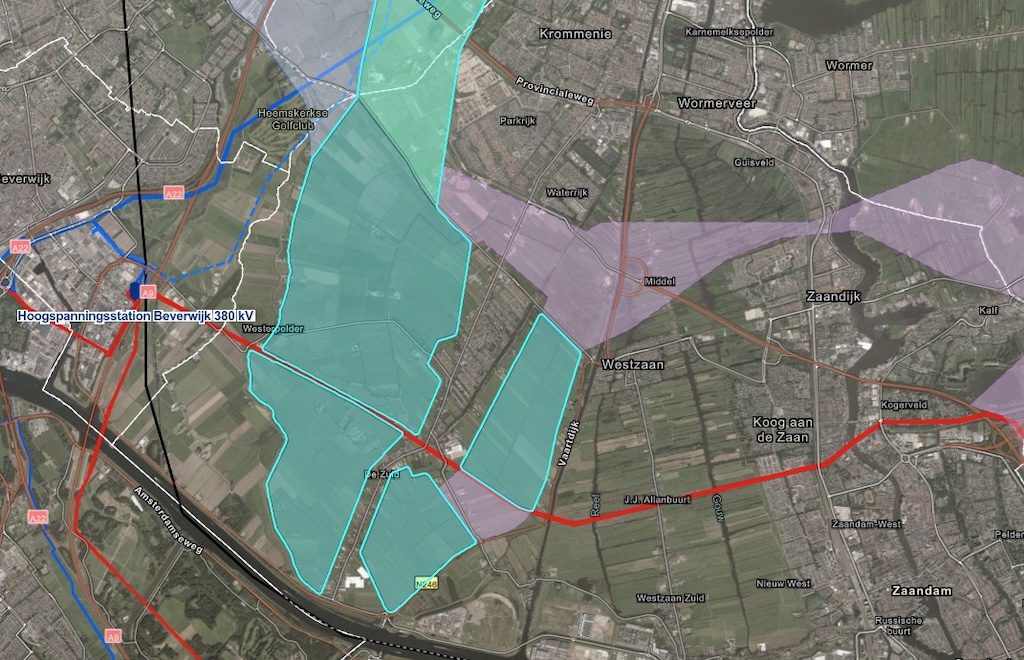 De kaart is ook hier te bekijken: Projectview – 380 kV netuitbreiding Noord-Holland Noord