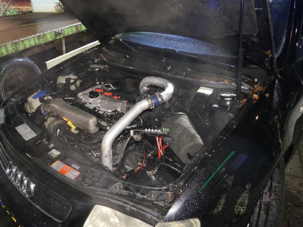 Volgens de bestuurder reed hij over de Vaartbrug en sloeg hij net rechtsaf toen hij een harde knal hoorde. Zijn vriendin reed in een auto achter hem reed en zag heel veel rook. De man zette zijn auto onmiddellijk aan de kant om te controleren wat er aan de hand was. Hij zag toen vlammen onder de motorkap, waarop hij direct de brandweer inschakelde.