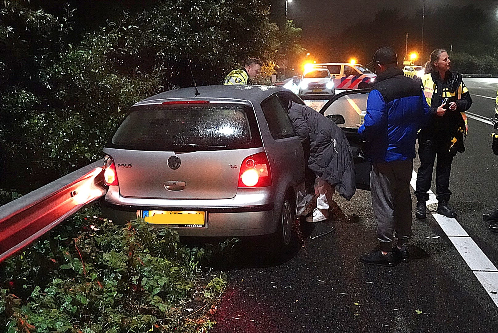 Bij het knooppunt Zaandam, in de bocht van de A7 richting de A8, raakte vanavond een automobilist in de slip. De Volkswagen Polo kwam in tegenovergestelde richting tegen de vangrail tot stilstand.