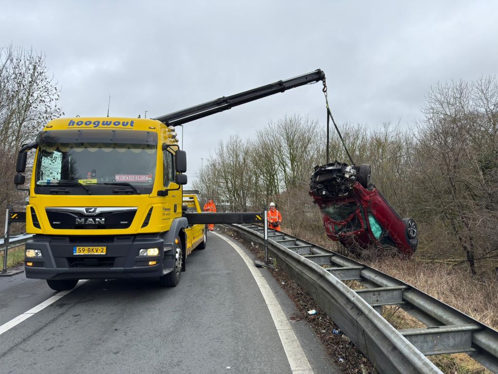 Tussen het punt waar de auto de vangrail raakte en de plek waar het voertuig tot stilstand kwam, zit een afstand van ongeveer 40 meter. De bestuurder wist zelf uit de auto te komen. Hij is per ambulance naar het ziekenhuis gebracht voor controle.