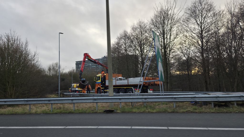 Daarnaast zijn medewerkers onderweg om de beschadigde vangrail te repareren. Naar verwachting zal de afsluiting nog geruime tijd duren.
