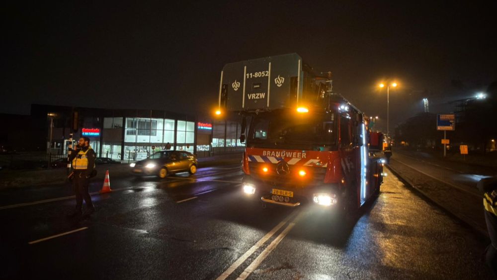 De brandweer was ook gevraagd te komen om één van de verkeerslichten aan het einde van de paal weer goed te hangen, aangezien deze nu ondersteboven hangt. Zij kunnen hier niets aan doen, de gemeente moet dit oplossen.