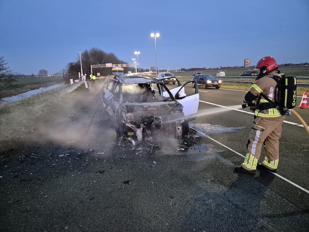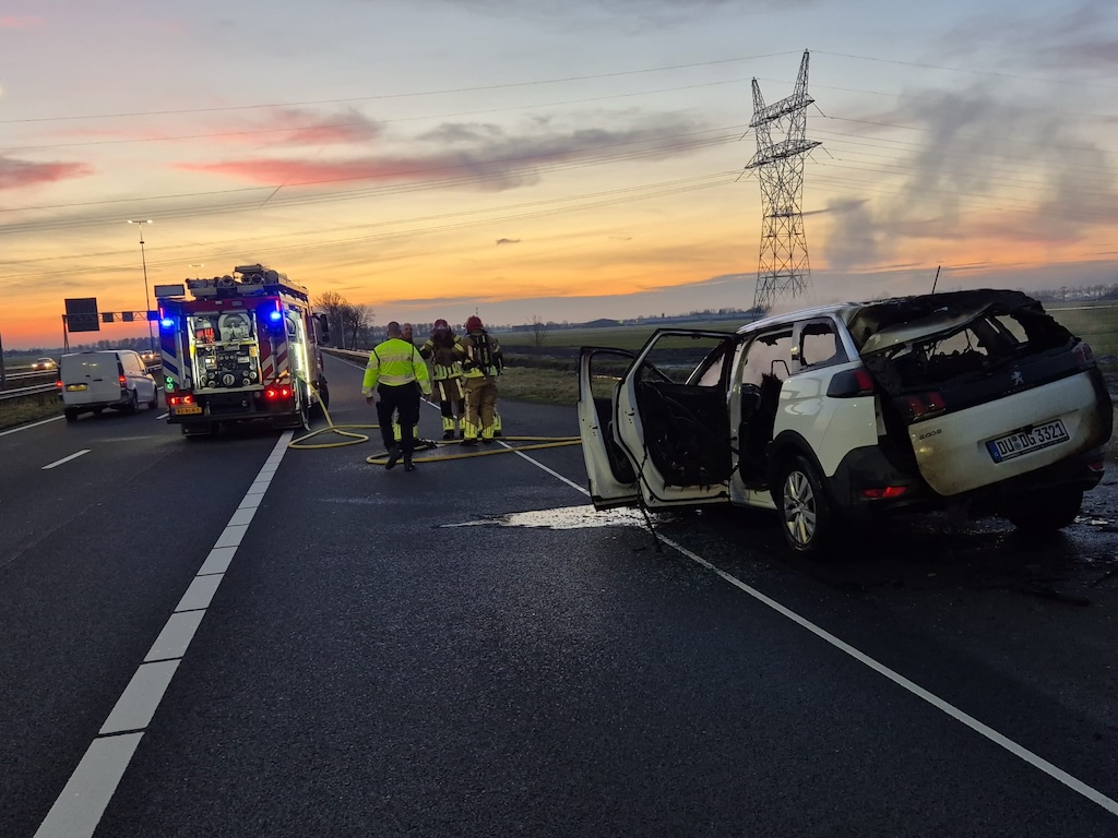 De brandweer bluste het vuur. De auto, met een Duits kenteken, raakte total loss en is door een berger afgevoerd. De snelweg is daarna weer vrijgegeven.