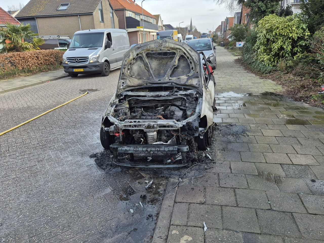 De brandweer was snel ter plaatse, maar zij konden niet voorkomen dat de auto in vlammen opging.