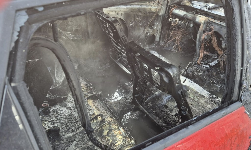 Van het voertuig bleef vrijwel niets over.