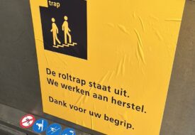 “Deze roltrap is stuk. Daar balen wij ook van. Helaas duurt het wachten op onderdelen lang. Excuses voor het ongemak.”