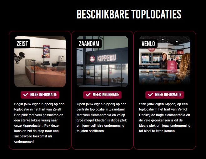 Elders op de Gedempte Gracht, bij de ingang van winkelcentrum Rozenhof, wacht Kipperij nog steeds op een geschikte franchisenemer. Op de website staat al maanden een vacature. De kipketen heeft toen ook al de ramen van het pand beplakt met een aankondiging, maar tot nu toe gebeurt er niets in de ruimte waar ooit de kippenpootjes en -kluiven over de toonbank moeten vliegen.
