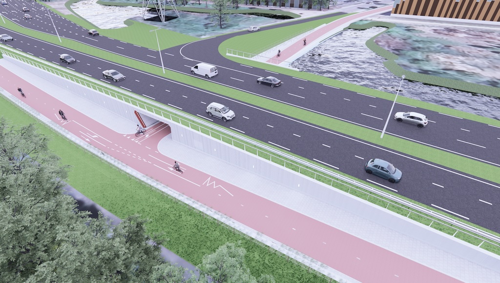 Half november worden de funderingspalen ingekort en gevuld met beton. Eind november worden de tunnelelementen geplaatst. Daarna wordt onder meer de vloer aan de kant van de aansluiting met Skoon aangebracht. Onder is te zien hoe het moet worden.