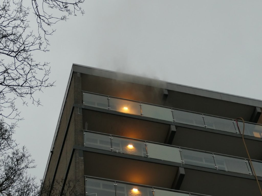 De brand bleek te zijn ontstaan in een hobbykamer en kon door de brandweer worden geblust. Na het blussen zijn er metingen en controles uitgevoerd. De buren van het appartement ernaast waren tijdens de brand ook niet thuis. Toen zij terugkwamen stond ook hun woning vol met rook. Ook in omliggende woningen zijn metingen uitgevoerd.