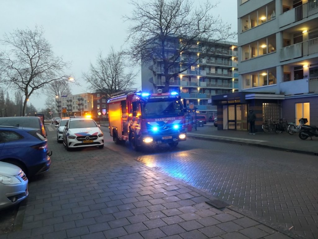 De politie zette direct de straat gedeeltelijk af en de brandweer ging zowel in de flat als met een hoogwerker naar boven. Bij de brand kwam er flink wat rook vrij. De brand is opgeschaald naar een ‘middelbrand’.