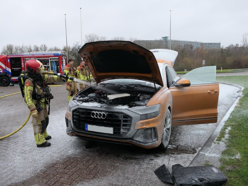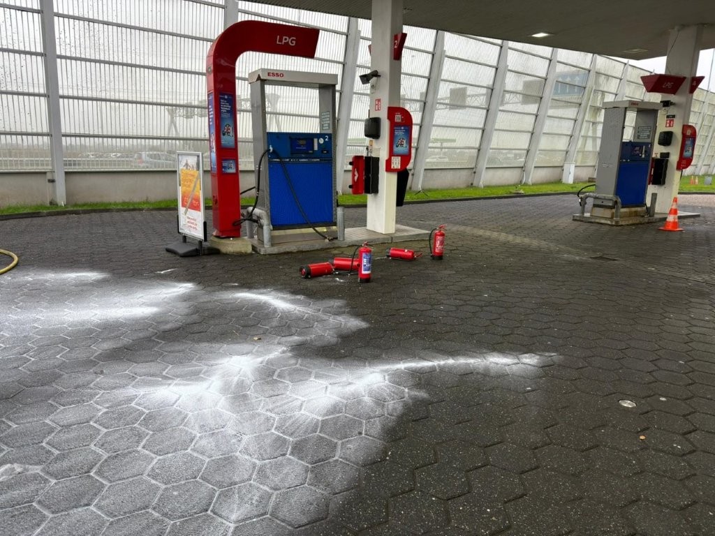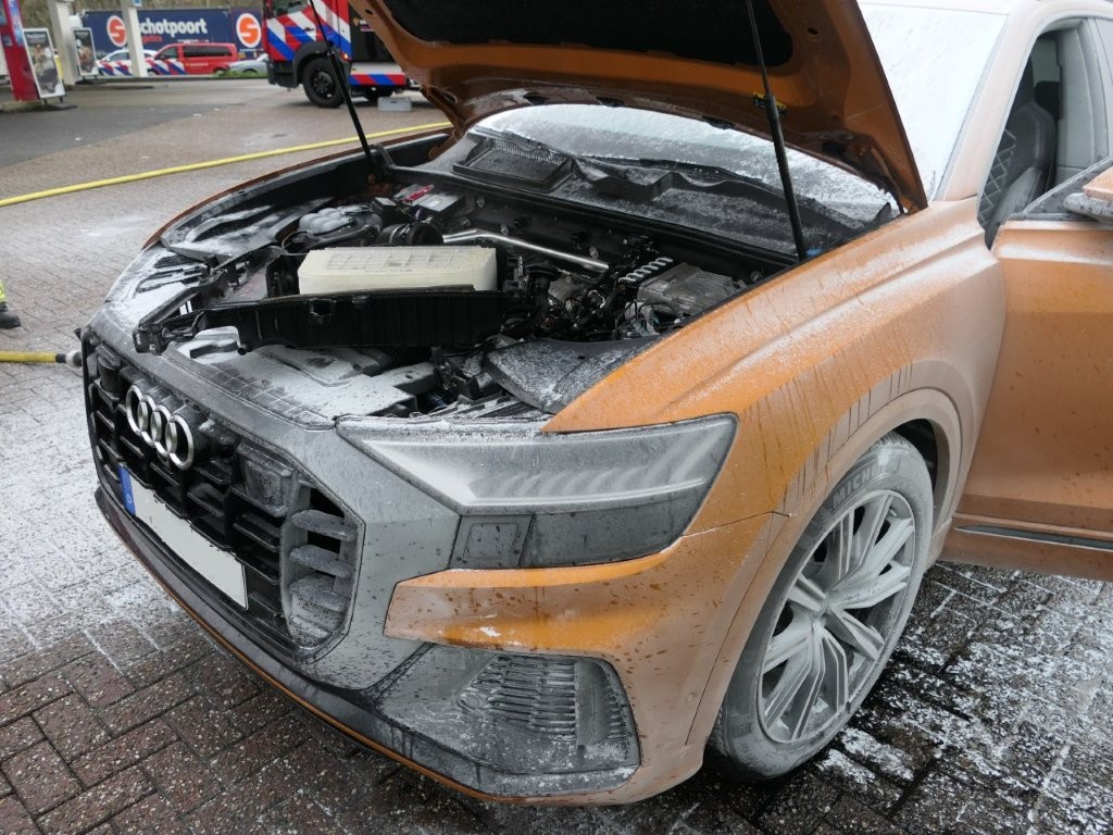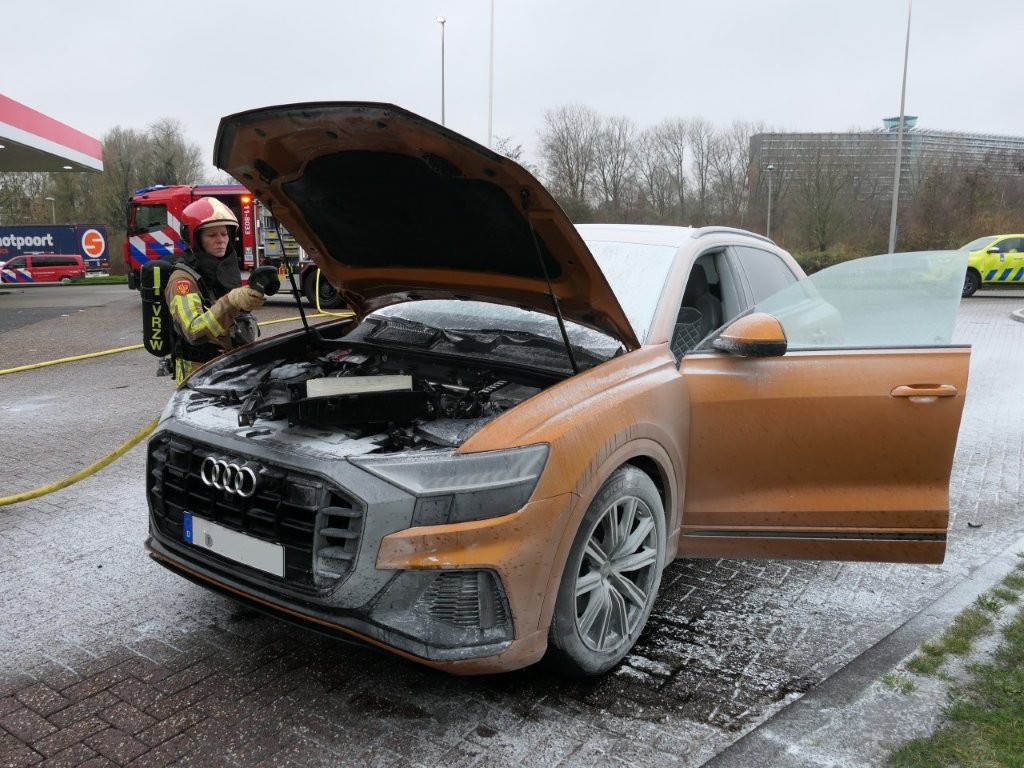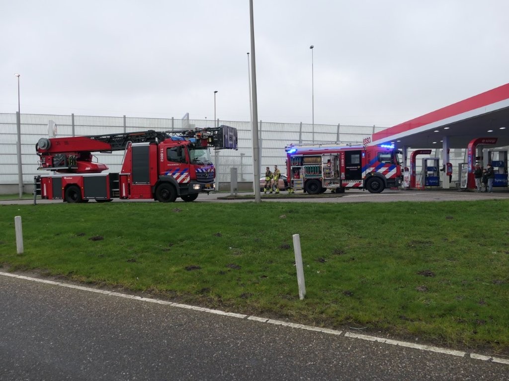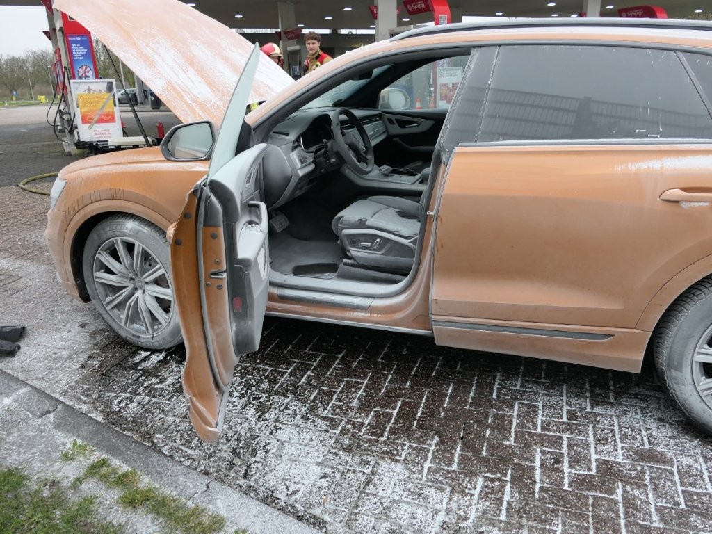 Bij het tankstation stapten de inzittenden uit en hebben ze met meerdere brandblussers de auto proberen te blussen. De brandweer kwam met meerdere eenheden en nam het blussen over. Ook werd de accu van de auto losgehaald.