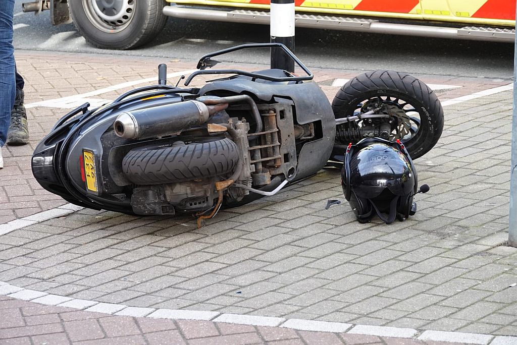 De bromfietsers reden op het fietspad. Ze wilden allebei naar de overkant, maar moesten wachten bij de verkeerslichten. Dat ging mis toen ze op elkaar botsten.