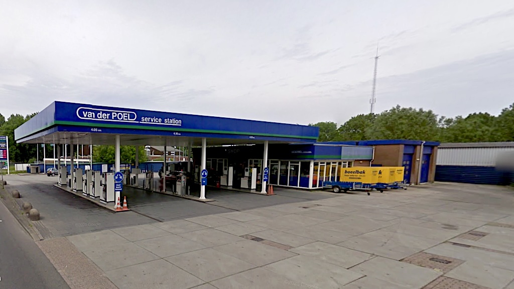Het tankstation zit hier al decennia. Tankstation Van der Poel – een ‘vrije pomp’ zonder merkbenzine – was er al in de vorige eeuw. In het archief vinden we een verbouwingsaanvraag uit 1991 en twee foto’s uit 1998. Volgens Google Street View zaten ze er nog in 2009 – in 2019 zien we Esso op de gevel.