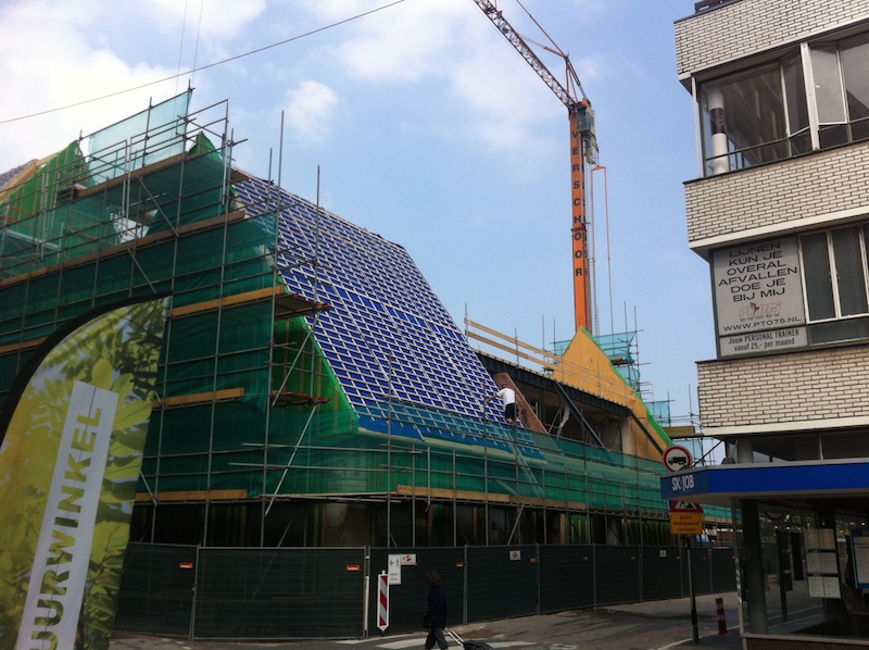 Na het Stadhuis en het Inntel hotel gaat ook C & A voor oud-Zaans, de nieuwe achtergevel aan de Rozengracht laat dat alvast zien.