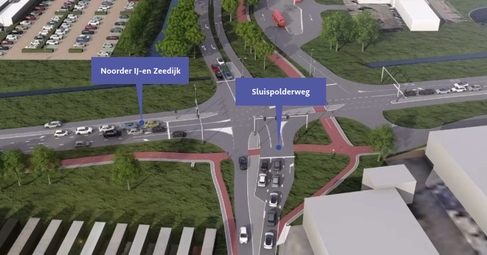 Het werk duurt in totaal tot 19 december. Dan moet het kruispunt Noorder IJ- en Zeedijk – Sluispolderweg klaar zijn: veiliger en met verkeerslichten.