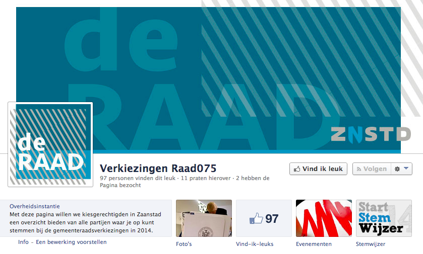 De Gemeente Zaanstad laat het campagnevoeren dit jaar aan de partijen zelf over. Ter bevordering van de opkomst heeft de afdeling Communicatie wel een Facebook-pagina gemaakt: Raad075. Die heeft al 97 “Vind-ik-leuks”.