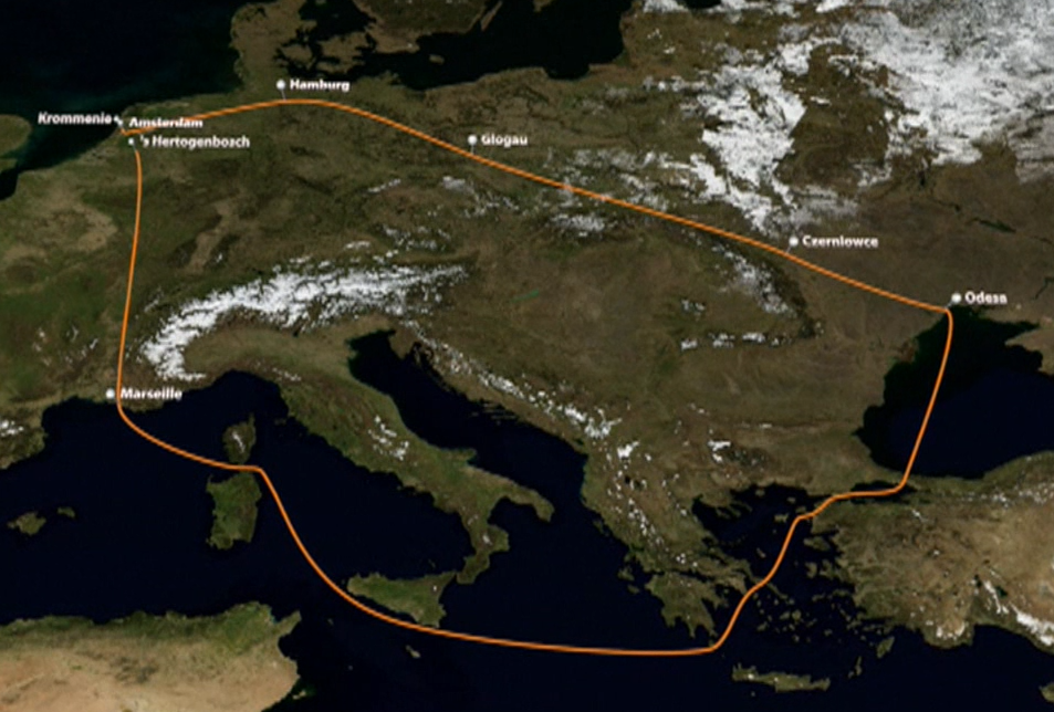 Hij belande via Amsterdam, Kampen en Hamburg in Glogau (tegenwoordig Polen). Na bevrijd te zijn door de Russen begon de tocht van De Boer en nog acht Krommenieërs via Polen, Roemenië en Rusland, waar hij in Odessa ingescheept werd naar Marseille, vanuit daar per trein via Den Bosch naar Krommenie, waar hij op 12 juni 1945 aankwam. Het kaartje hierboven is uit de film.