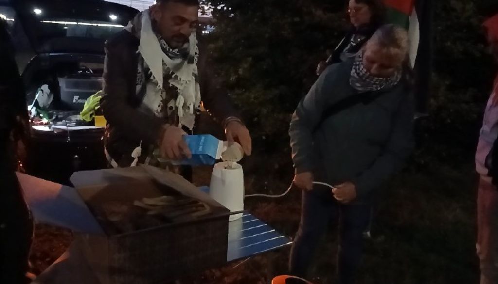 Volgens berichten op sociale media zou de journalist in hongerstaking zijn gegaan. Ook sommige actievoerders praten hier over. Zelf doen ze niet mee, een van de aanwezigen heeft een flinke doos vol broodjes en een kan thee meegenomen voor de demonstranten.