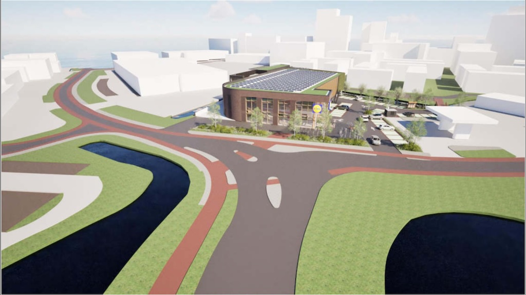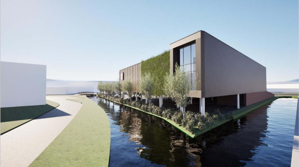 De Lidl in Wormerveer gaat verhuizen van de Cor Bruynweg naar de Vlasblomweg 22, naast de geplande nieuwbouwwijk Zaankwartier. En zo gaat het eruit zien.