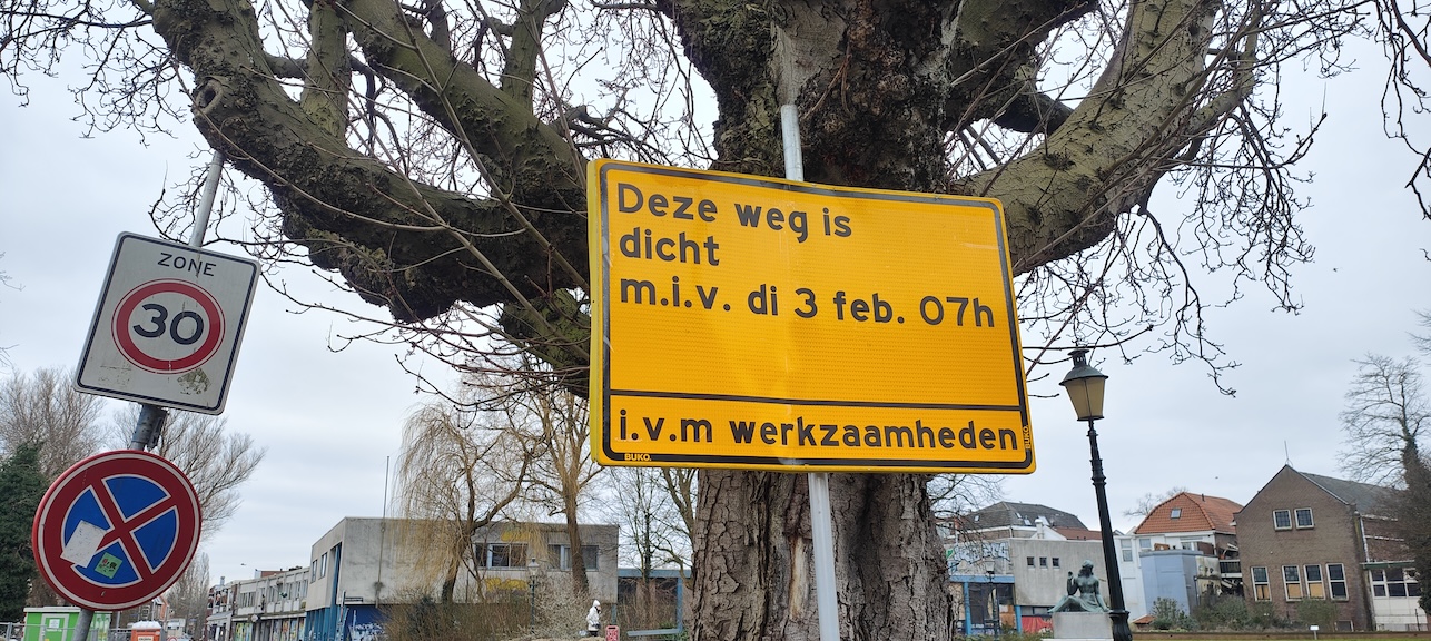 Borden, hekken, afzettingen, inrijverboden, opbrekingen, werkzaamheden, boomverhuizingen, afgesloten wegen en complexe of onmogelijke omrijdroutes.
