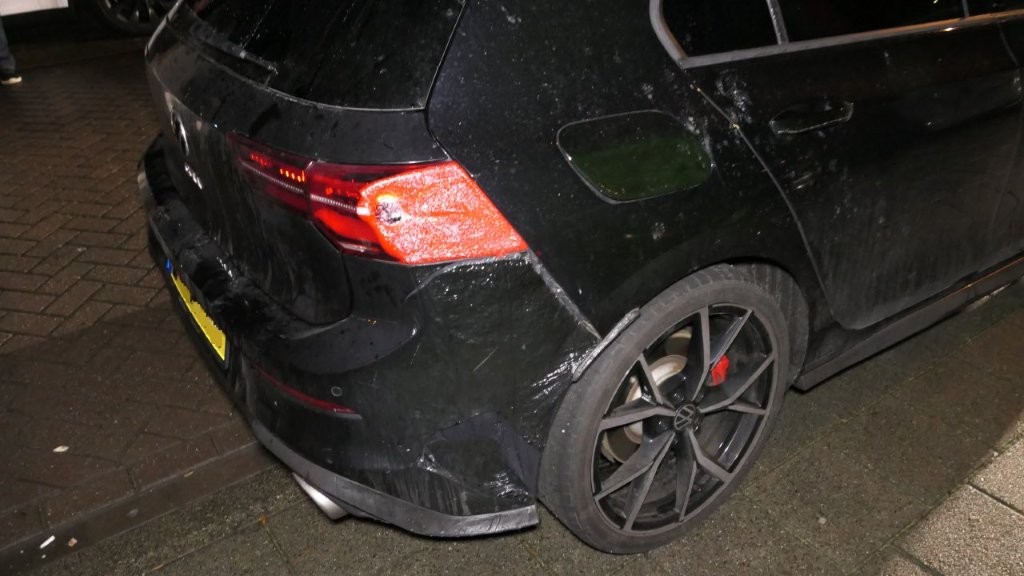 Aan de andere kant van de Kia liep ook een Volkswagen Golf GTI schade op aan de rechter achterzijde en de dakspoiler. De eigenaar mocht de auto snel verplaatsen, waardoor verdere schade werd voorkomen. Naast de drie auto’s was een schuttingdeel zwartgeblakerd door de hitte.