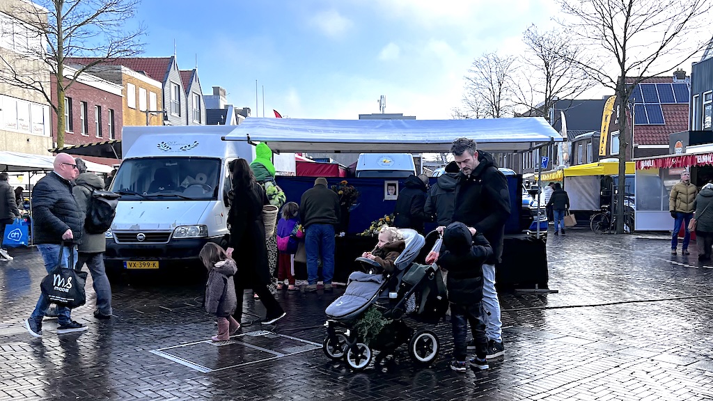 Geen haringen, geen paling en geen makreel op de kraam van Tom en Hans op de Zaandamse markt vandaag. Wel bloemen. En een foto van haringman Tom – voluit Johan Tobias Alexander Mönch – die vorige week overleed: 1962 † 2026.