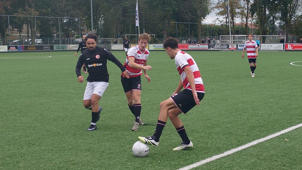 Je ziet als je bij ons naar de afgelopen wedstrijden kijkt hoge pieken, diepe dalen. Vorige week bij Hercules speelden we een ijzersterke wedstrijd. De eerste helft vandaag kwamen we er moeizaam in. Simpele balletjes kwam niet aan, al hebben we denk wel nog twee goede kansen gehad. Na rust probeerden we nog wel te voetballen, maar raken de jongens door de intimidatie van Rood Wit, in de goede zin van het woord, toch een beetje van slag.