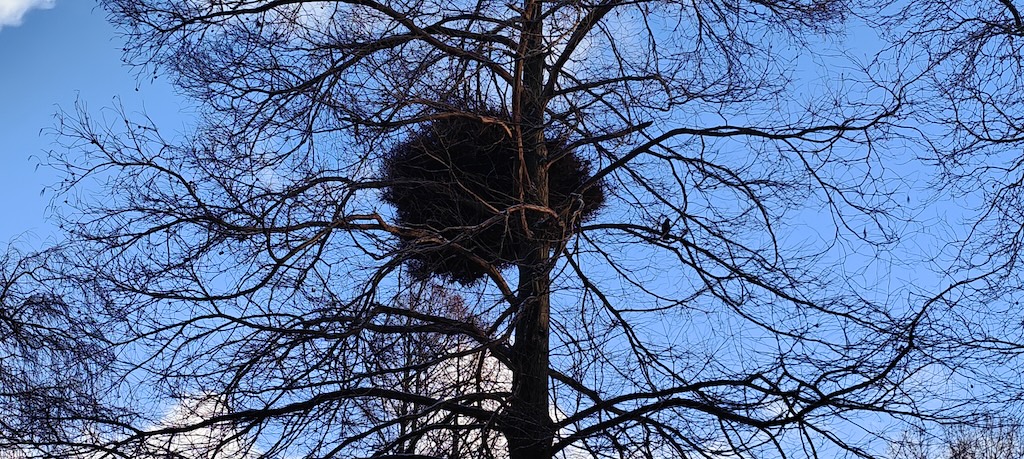 Een zoektochtje in het Orkaanarchief leverde de onderstaande foto op, genomen vanaf de Jan Eijdenbergstraat. Die maakten we in 2018. Of het nest groter is geworden kunnen we niet goed zien. Maar het lijkt er wel een beetje op. Bijzonder is wel dat het nest extreem goed in elkaar zit. Het heeft probleemloos de stormen van de afgelopen jaren (Poly, Eunice) doorstaan.