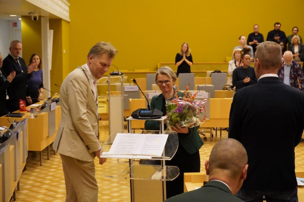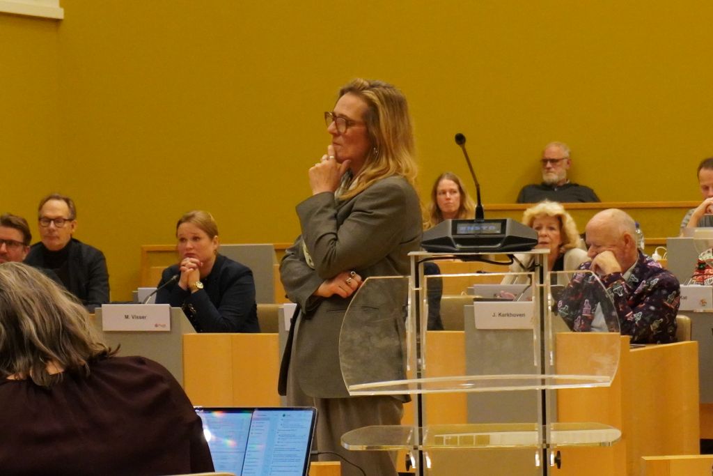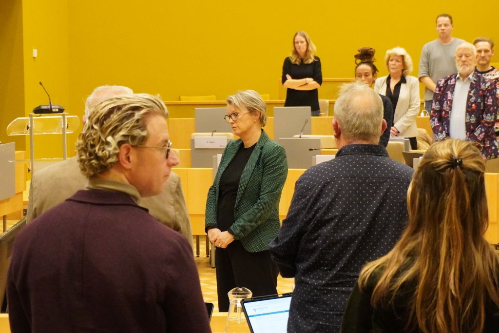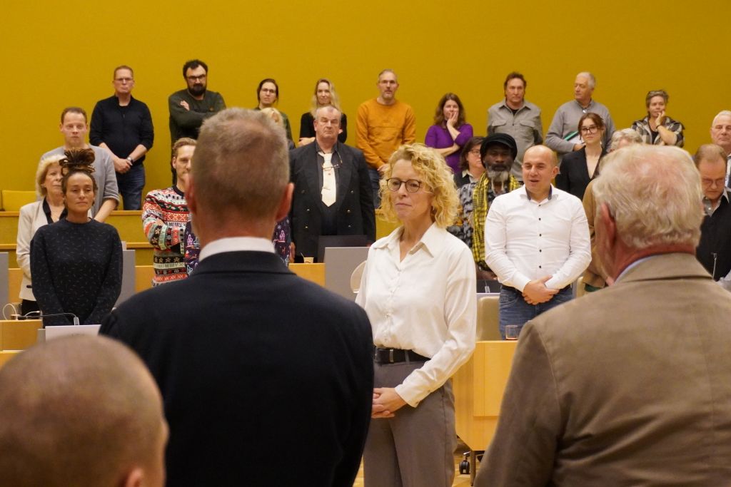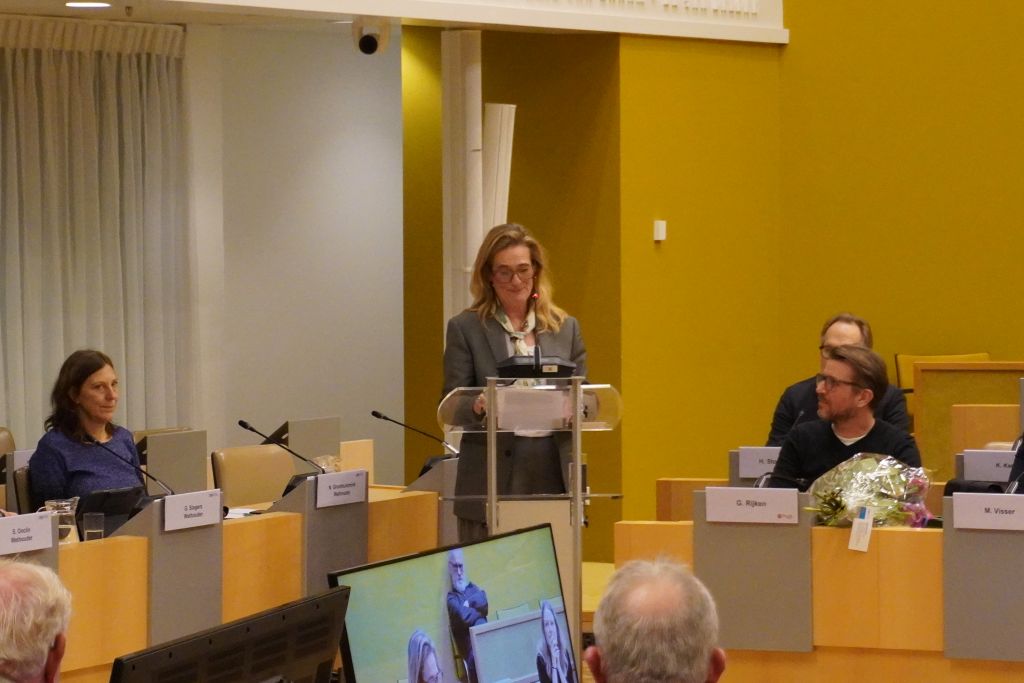 Natascha Stroo, voormalig fractievoorzitter van GroenLinks in de gemeenteraad, nam afscheid van haar collega’s met een emotioneel slotbetoog. De opgestapte PvdA’ers Geert Rijken, Marieke Visser en Hans Stokebrand en oud-wethouders RenĂ© Tuijn en Wessel Breunesse waren voor haar naar de raadsvergadering gekomen.