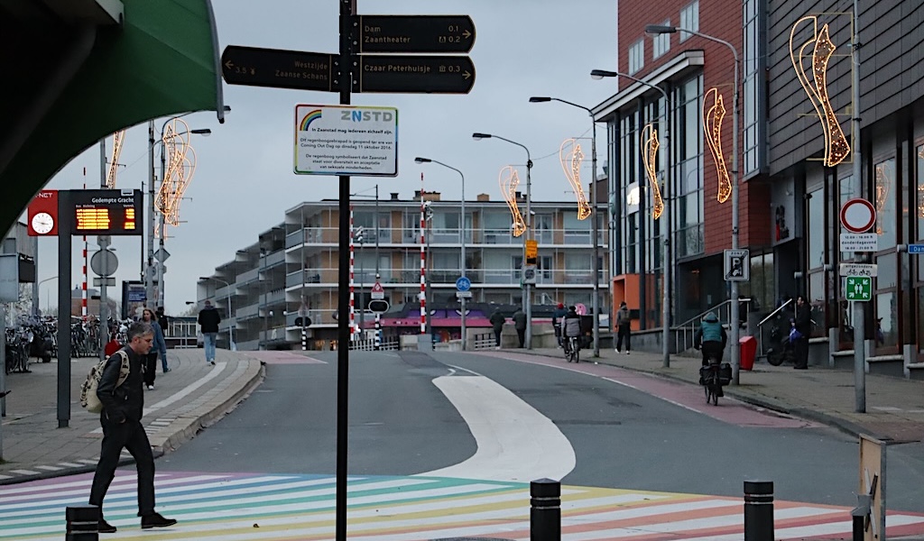 Geen molens deze keer maar sierlijke vormen en slingers in het centrum van Zaandam bij de nieuw opgehangen feestverlichting van Stadshart Zaandam.