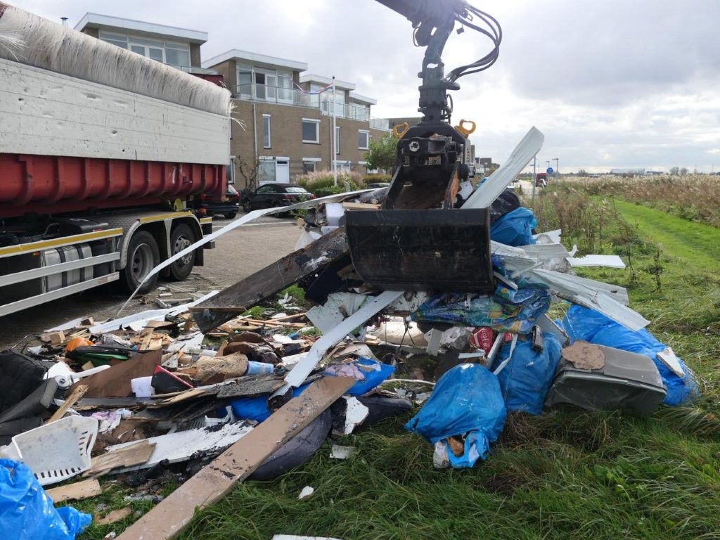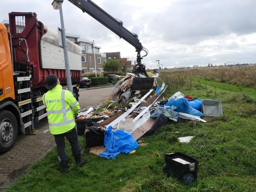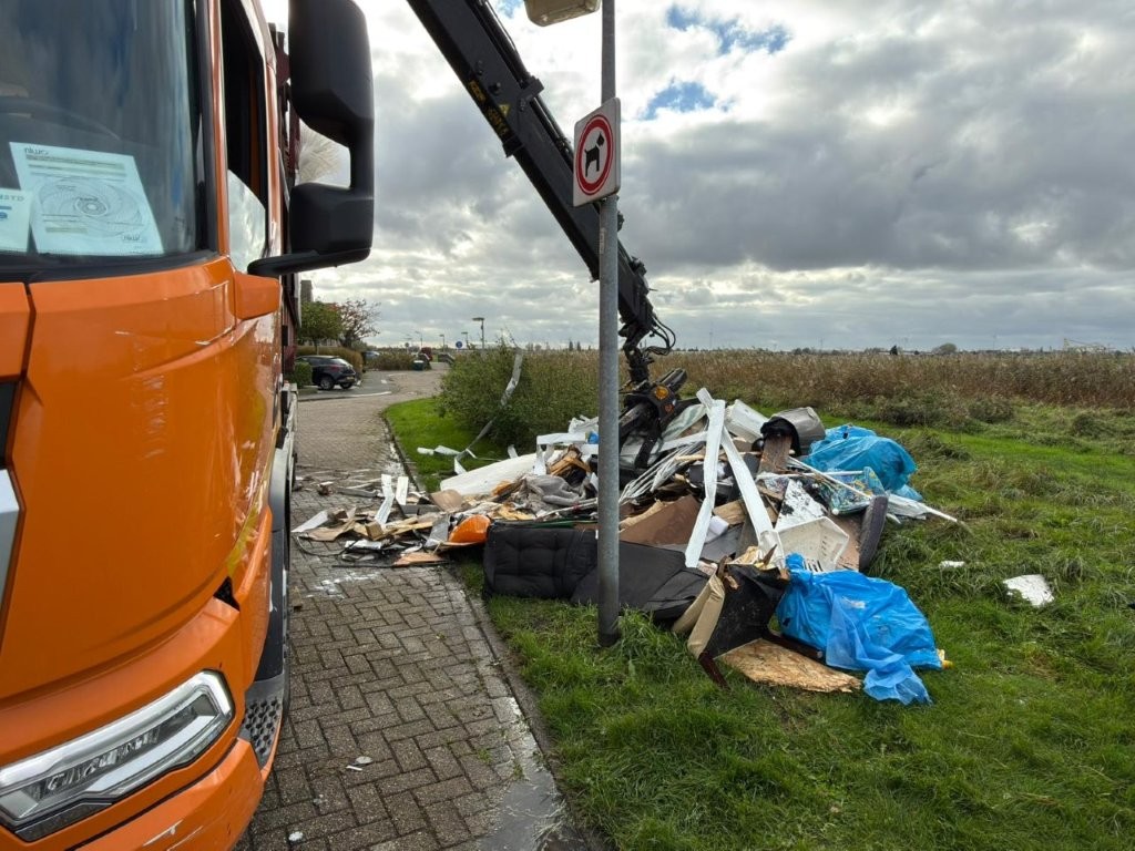 Om het gedumpte afval weer op te ruimen, is door de gemeente Zaanstad een bakwagen met grijper ingezet. Niemand raakte gewond bij het incident. Onder een slideshow met vijf foto’s, klik op pijltjes of swipe.