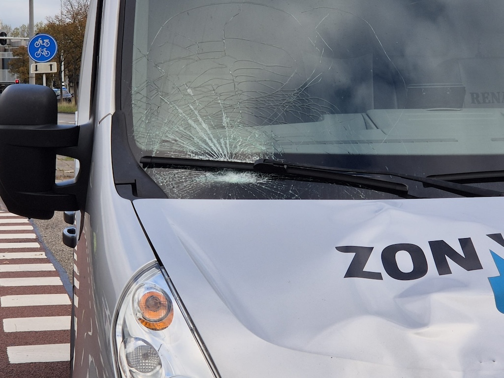 De bestelbus hield er een ster in de voorruit en een deuk in de motorkap aan over, maar kon zijn weg nog vervolgen.