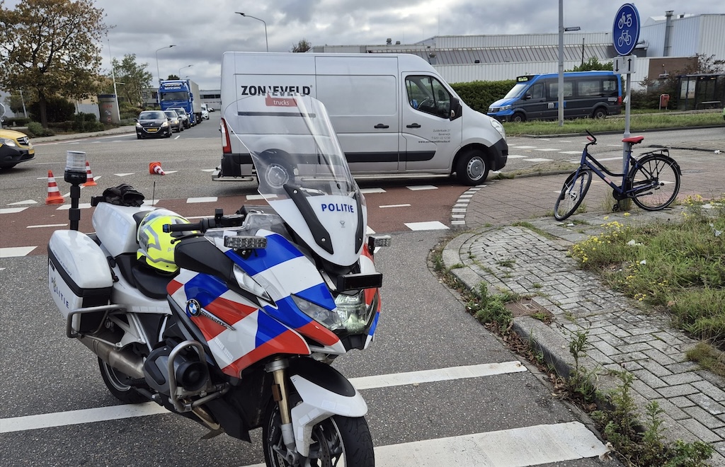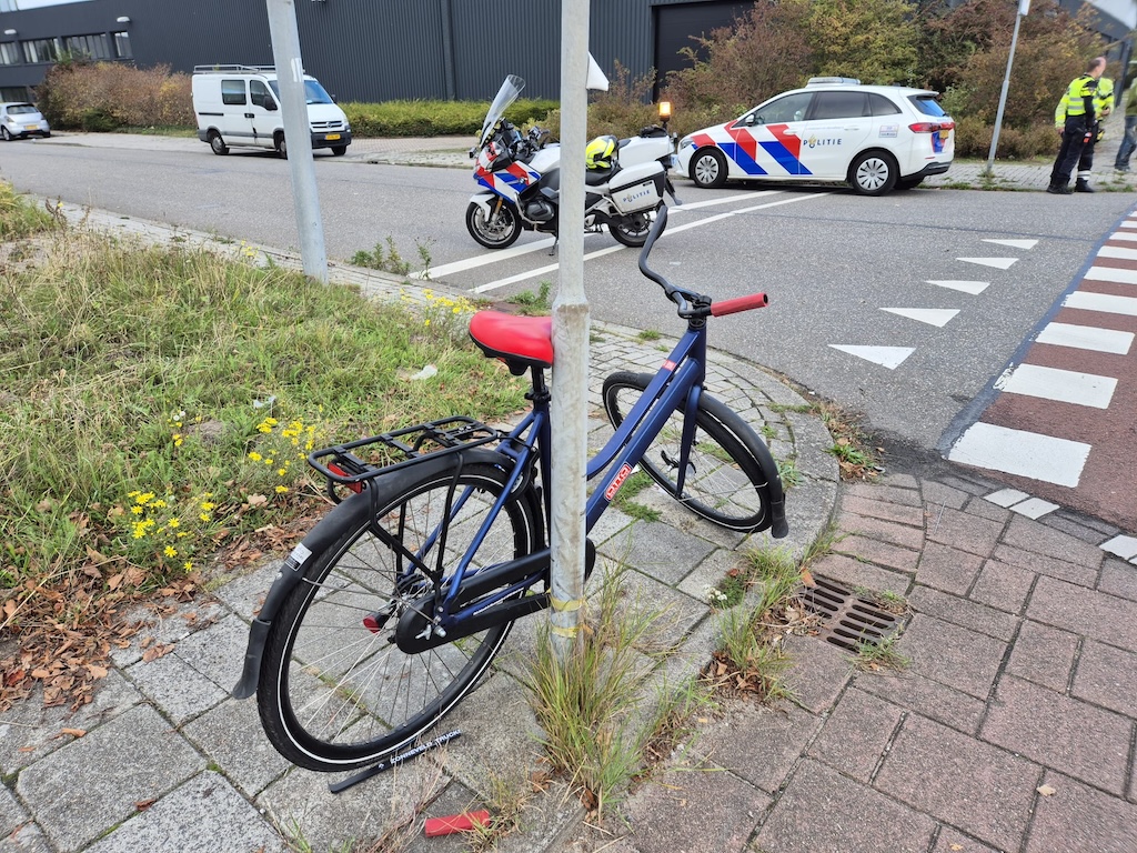 De automobilist zag de fietser vermoedelijk over het hoofd en reed hem recht aan. De klap was fors: de fiets liep zware schade op en ligt aan diggelen.