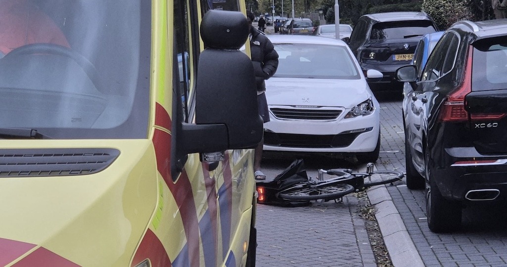 De fietser raakte gewond aan het gezicht en is met de ambulance naar het ziekenhuis gebracht.