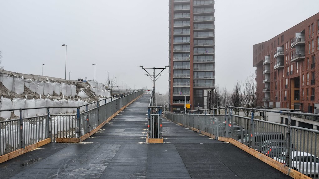 Het steigerpijpen fietspad is voorzien van houten delen die ingesmeerd zijn met een soort teer en voorzien zijn van anti-slipmiddel wat er nu al af is waardoor de platen glad worden. Ook veroorzaken ze herrie wanneer er zware bromfietsen overheen rijden want de houten delen zijn niet echt goed vastgezet, dit alles uit eigen ervaring.