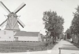 Op de achtergrond van de oude foto zien we een deel van de oude Wilhelminabrug met daarnaast het oude Havenkantoor. De Wilhelminabrug bestond uit twee bruggen, de eerste was een dubbele basculebrug over de Wilhelminasluis en de tweede was de ophaalbrug die we op de oude foto zien. De bruggen werden gelijktijdig met de bouw van de Wilhelminasluis in 1903 gebouwd. De Wilhelminabrug is in 1965 vervangen door de huidige brug.