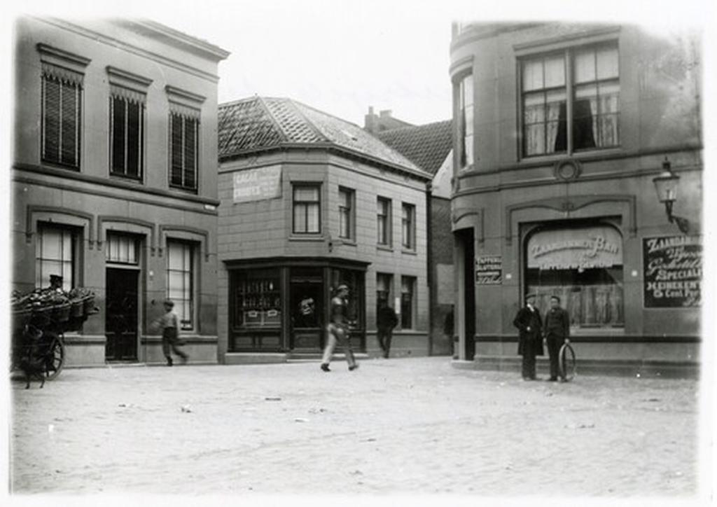 Rechts op de foto zien we het nog bestaande pand Gedempte Gracht 7, waar tegenwoordig Döner City is gehuisvest. Toen de oude foto werd genomen was dit de Zaandammer Bar van uitbater Jan Visscher. In 1921 kwam hier apotheek De Eenhoorn die begin jaren ‘80 zou verdwijnen. Later kwam hier bakkerij Hopman.